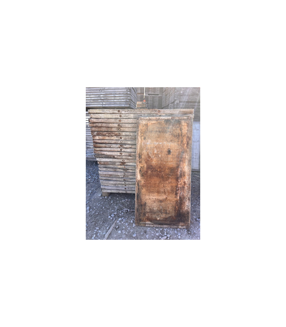 Ce panneau en bois est idéal pour des constructions en extérieur. Son format et son poids permettent une manipulation facile pour une terrasse en bois, un plancher, mais aussi pour une application verticale comme une cloison, une palissade, etc... Ce panneau de moulage de blocs présente les traces de son ancienne utilisation car il a été soumis à la chaleur et au ciment. Vous pouvez bien sûr le laver et le poncer pour lui redonner un aspect plus neuf. Les extrémités sont protégées par un profil métallique.